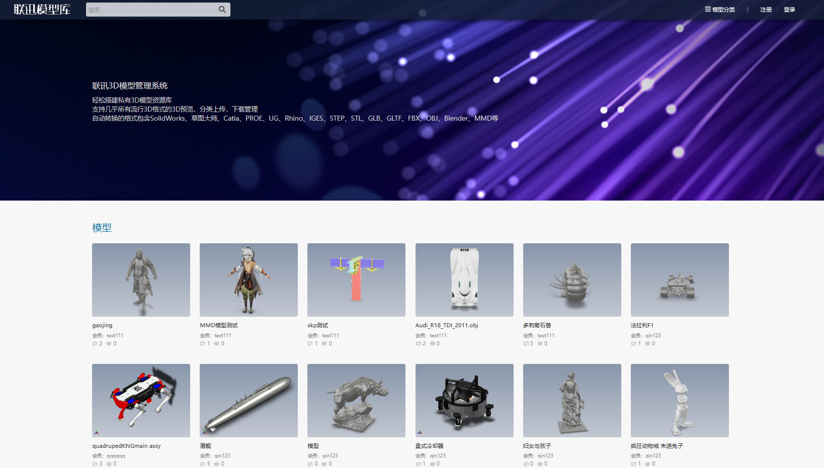 • 联讯3D模型管理系统是一套基于迪威云服务构建的私有3D模型网站平台,可为企业迅速搭建自有3D产品库、3D资源库,支持主流全格式3D格式在线3D预览,自动适配手机端页面。